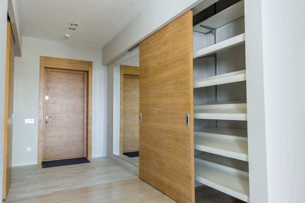 Using sliding doors instead to swing doors to free up swinging space
